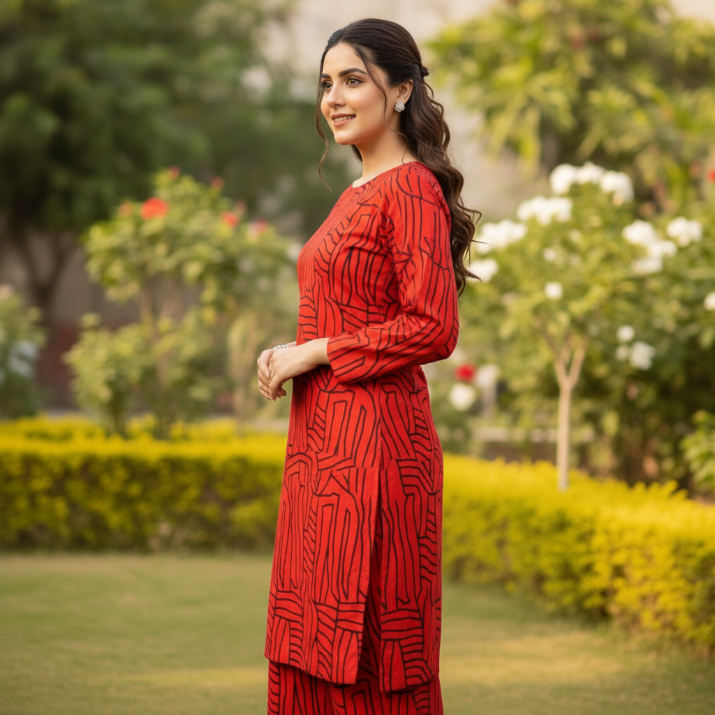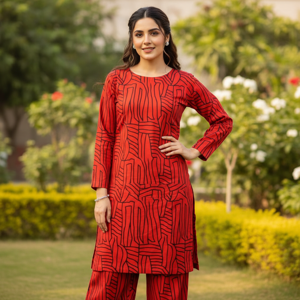 Category: Doria Lawn Tags: 2-Piece Co-ord, Abstract Print, Bana Doria Lawn, Modern Ethnic Wear, Premium Lawn Pakistan, Red and Black Suit, Red Lawn Suit, Summer 2026
