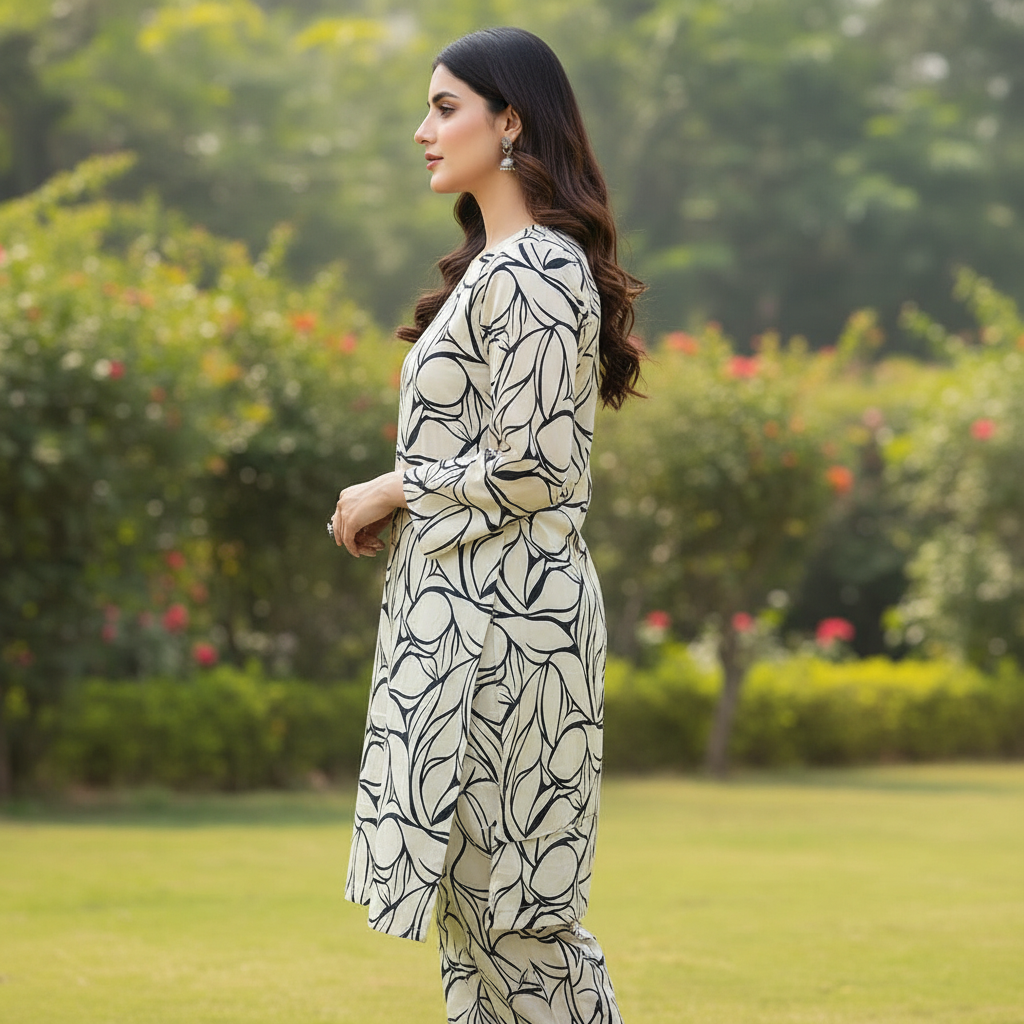 Category: Doria Lawn Tags: 2-Piece Co-ord, Abstract Floral, Bana Doria Lawn, Ivory Lawn Suit, Minimalist Ethnic Wear, Monochrome Print, Premium Lawn Pakistan, Summer 2026