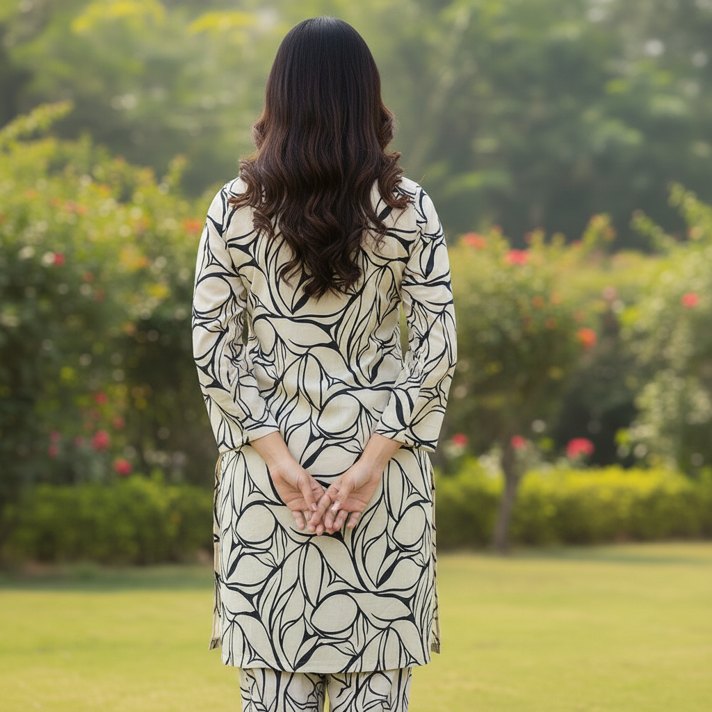 • Fabric: Premium Bana Doria Lawn, featuring the signature lightweight checkered texture that provides exceptional airflow and a crisp summer drape.