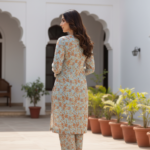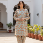 • Cut: A traditional 2-piece set featuring a round-neck straight-cut shirt and matching printed shalwar-style trousers for a comfortable, airy fit.