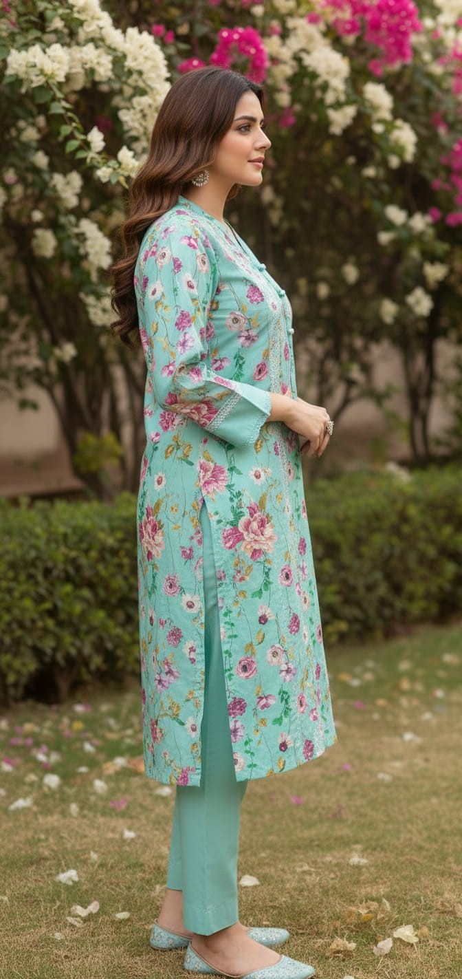 • Fabric: Premium Air-jet Lawn, selected for its exceptionally smooth texture and high durability, making it a staple for summer luxury.