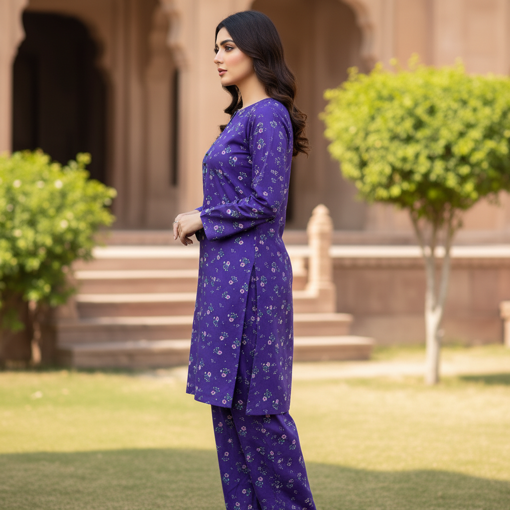 Category: 2 Pieces Tags: 2pc Cotton Outfit, Abstract Print Co-ord, Dark Floral Dress, Midnight Floral Suit, Modern Women Wear
